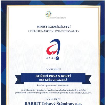 Získali jsme ocenění KLASA na naše kuřecí výrobky.