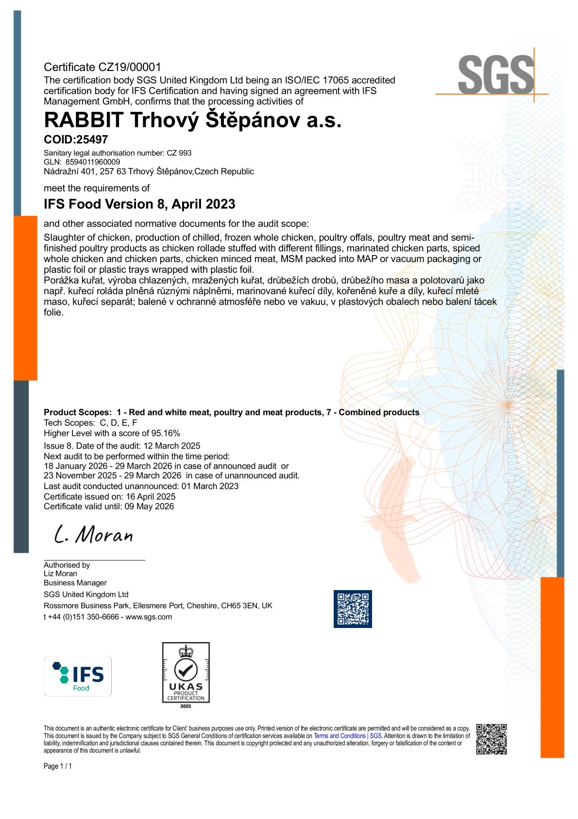 IFS Certifikace kuřecího masa